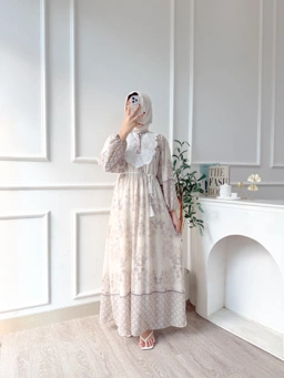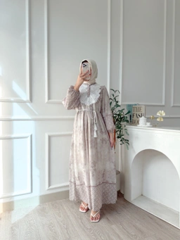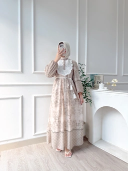 Bahan ceruty full furing, tipe bahan bertexture yaaa, nyaman di pakai.. details kancing depan kerah sanghai, mix brokat import area dada.. lengan berkaret model ngebalon ya, free belt, ckepp pol!🤍🫶🏻