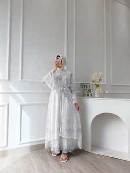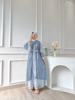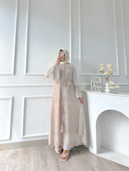 Bahan ceruty motif yaa, tipe bahan halus dan jatuh.. combin outer brukat menyatu🤍 details inner sleting blkg, kerah shanghai mix payet, tangan terompet mix brokat.. full furing yaa! model dress plisket, outer brokat chantily.. include belt kain! cakepp poll💕 ✨