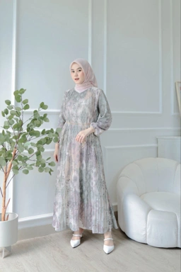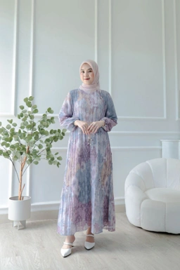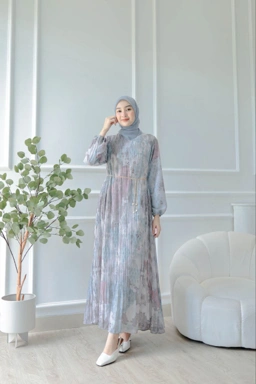 Bahan ceruty dilapisin furing ya aman gak nerawang, tipe bahan jatuh dan halus nyaman dipakai.. details kerah V, tangan berkaret, include dgn belt rantaii yaa, model plisket manis bgtt!🤍✨