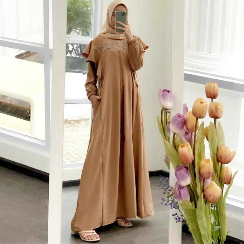 ARKASHA MAXI : Bahan lady zar*a combi brukat hanya bagian atas. Reseleting belakang (tidak busui) , ada layer membuat tampilan jadi elegan,tangan karet,ada kantong, super comfy❤️ : Ld 102 Pjg 134 Pjg tangan 53 Lingkar lengan 42 Berat 420gr