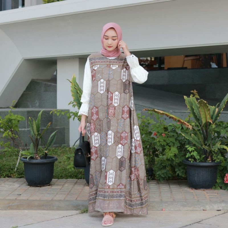 AROLSYA MAXI : bahan motif maxmara, jamin aluss, jatuh,ga mudah kusut,bisa cek detail, adem di pakai, sleting depan, tangan karet. tangan combi bagian polos furing bahan shakila dan brukat, ada kantong kanan kiri : Ld 102 Pjg 137 Pjg lengan 52 Lingkar lengan 40 Berat 420
