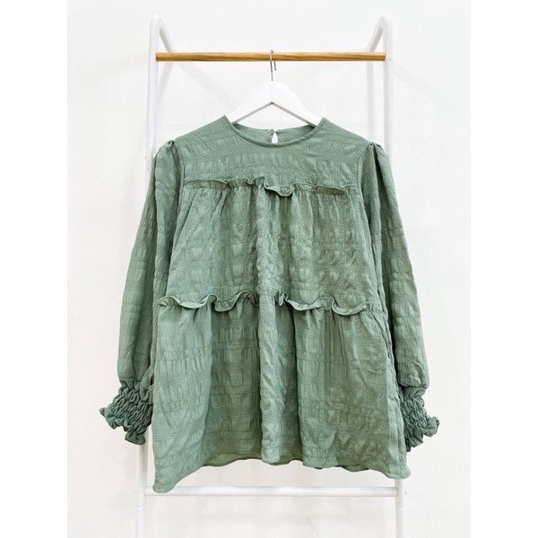 ACKEYSA Bahan Cringkle crush import ✨ Cakep bangetttz 👌👌 All size : Lingkar Dada 108cm Panjang Baju 66cm Panjang Lengan 52cm Lingkar lengan 50cm Varian warna : MINTY - SOFTLAVENDER - NUDEPEACH - MOCCA Berat produk : 300gr • tidak 100% sama dikarnakan perbedaan cahaya yang di hasilkan oleh kamera -Details bagian depan baju ada ruffle -Model kerah bulat melingkar -Bagian ujung lengan model kerut -Ada kncing pengait di bagian belakng - Bahan cringkel enak banget di pakai nyaman Cakep bangettt blouse polos yg cocok di pakai kemana aja 😱🥰 Model baju yg lagi kekinian