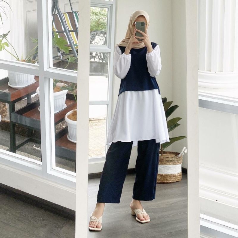 ARNAZUA ONE SET : Bahan lady zara lokal, bahan alus,ga nerawang,nyaman di pakai,cek detail Atasan model tunik combinasi nyatu,tidak busui, celana pinggang ful karet : Ld 100 Pjg atasan 85 Pjg tangan 52 Lingkar lengan 40 Pjg celana 88 Lingkar paha 58 Lingkar pinggang 44-melar sampai 92 Berat 430gr