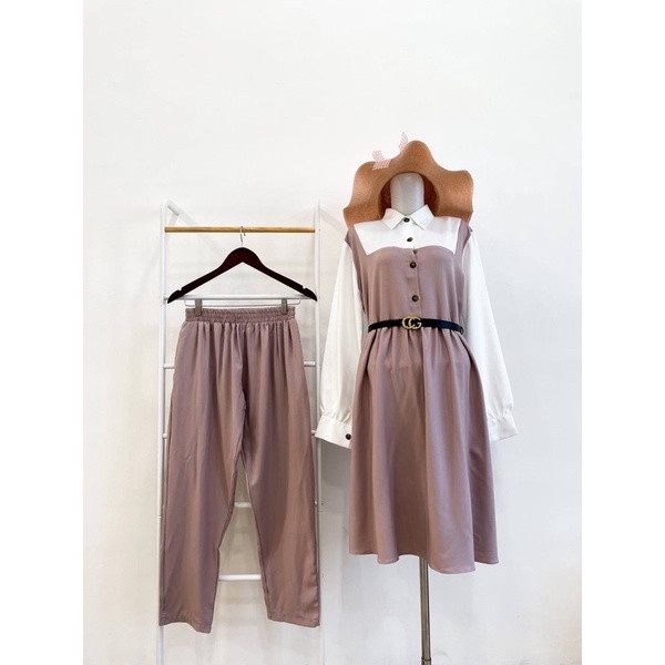 ACNAMIYO Bahan shakila premium 👍 jamin bagusss Varian warna: MUSTARD - LATE - MOCCA - GREY Ukuran : All size ( 1 ukuran ) Detail size : - Baju Lingkar Dada 104cm Panjang Baju 100cm Panjang Lengan 59cm Lingkar ketiak 50cm - Celana Lingkar paha 68cm Lingkar pinggang strech to 114cm Panjang Celana 90cm Berat Produk : 400gr • Info produk : - Kemiripan warna pada foto tidak 100% sama karna efek cahaya - Bahan super halus lembut,adem & nyaman di pakai seharian Detail baju : - Busui friendly kacing depan - Kerah kemeja -Model baju agak babydoll -Lengan sedikit balon -Sudah freebelt Detail Celana : -Pinggang karet full keliling -Ada saku dikanan dan kiri Oneset super lucu 🥰😍Simple tapi elegan