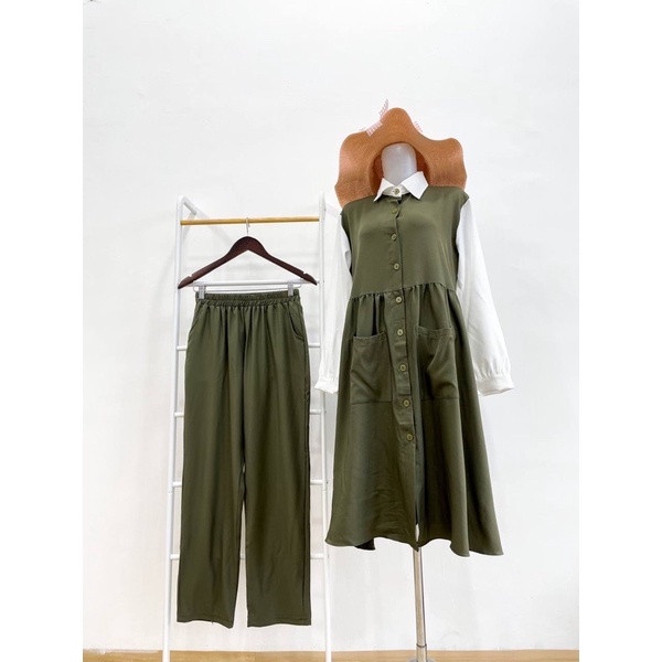 ACBIANCCA Bahan shakila premium 👍 jamin bagusss Varian warna: MUSTARD - ARMY -SOFTLAVENDER-MOCCA Ready 2 Ukuran : L & XL Detail size L : - Baju Lingkar Dada 104cm Panjang Baju 104cm Panjang Lengan 54cm Lingkar ketiak 50cm - Celana Lingkar paha 66cm Lingkar pinggang strech to 106cm Panjang Celana 95cm Detail size XL : - Baju Lingkar Dada 114cm Panjang Baju 104cm Panjang Lengan 54cm Lingkar ketiak 50cm - Celana Lingkar paha 68cm Lingkar pinggang strech to 106cm Panjang Celana 95cm Berat Produk : 500gr • Info produk : - Kemiripan warna pada foto tidak 100% sama karna efek cahaya - Bahan super halus lembut,adem & nyaman di pakai seharian Detail baju : - Busui friendly full kancing sampai bawah - Kerah kemeja -Model baju agak babydoll -Ada saku di bagian depan Detail Celana : -Pinggang karet full keliling -Ada saku dikanan dan kiri - Model celana standar Oneset super lucu 🥰😍Simple tapi elegan