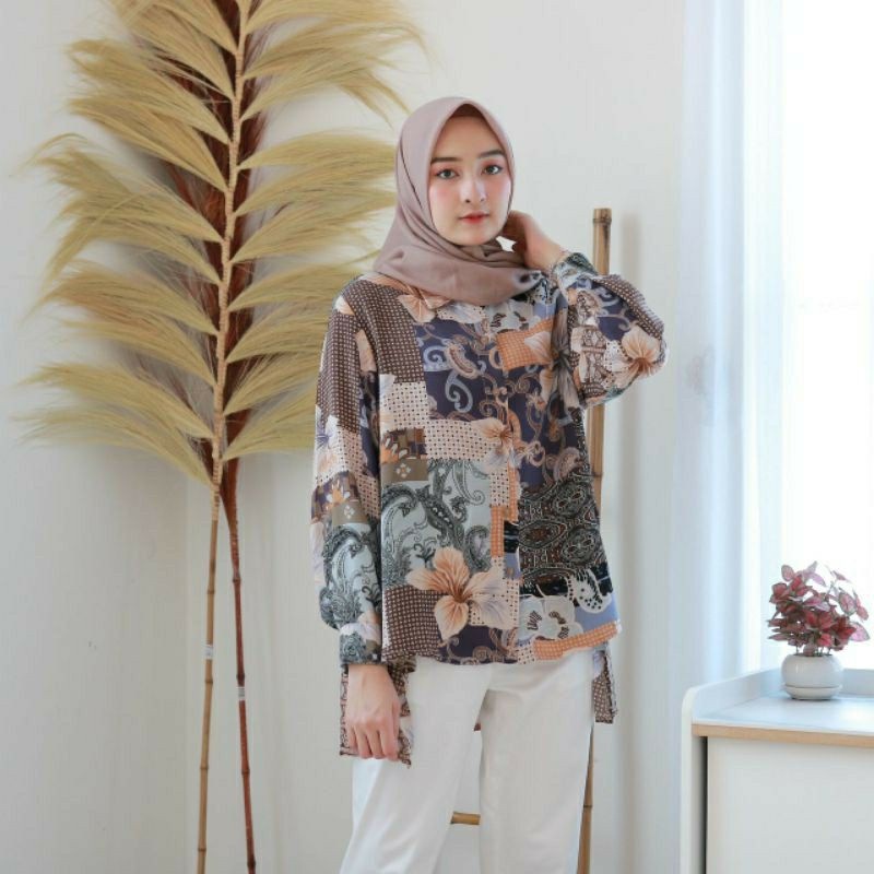 ARSORAYA BASIC : Bahan milano, texture alus ya,bahan ga mudah kusut & jatuh, ga nerawang, nyaman di pakai Kemeja berkerah ful kancing dg model bagian belakang lebih panjang dari depan , motif abstrak : Ld 108 Pjg depan 63 Pjg belakang 79 Pjg tangan 54 Berat 265