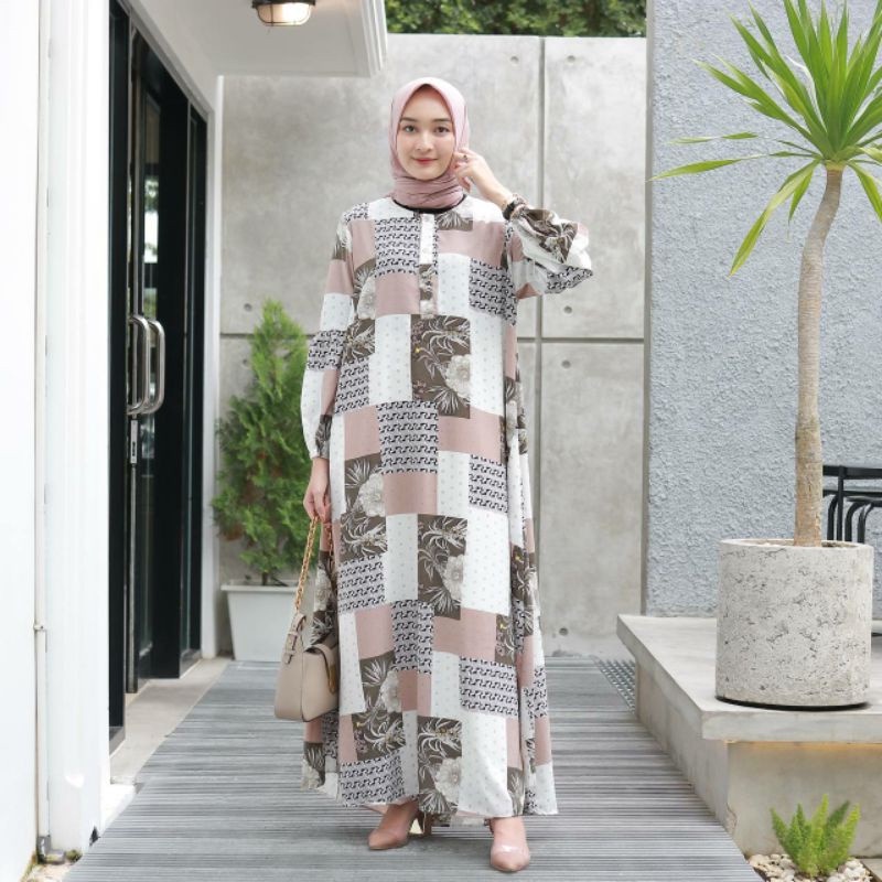 NEW ARAVA MAXI : : BAHAN peach zara, tipe bahan jatuh, ga mudah kusut, ketebalan pas ga nerawang ya, flowy, bisa busui ada kancing,tangan karet Cek detail bahan,(ketebalannya setara dg maxmara) : : Ld 102 Pjg 138 Pjg lengan 55 Lingkar lengan 36 Berat 310