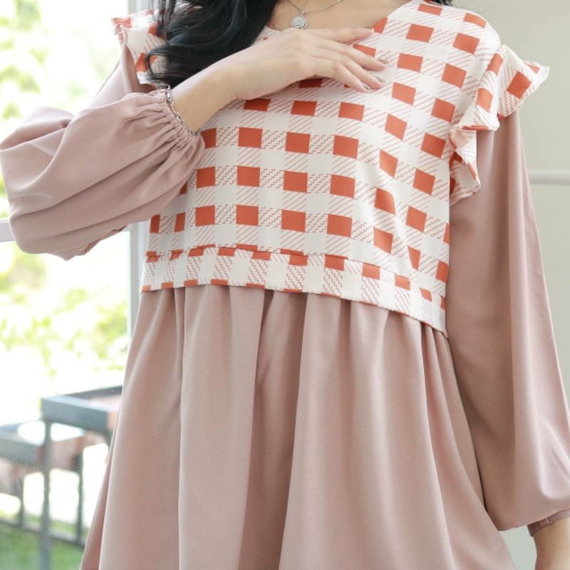PAZEL TOP : Bahan motif katun rayon yg pasti adem ya, bahan ga tebal tapi ga nerawang,kombi polos lady zar*a ,lembut bahannya. Kancing belakang (tidak busui), tangan karet : Ld 104 Pjg 74 Pjg tangan 56 Lingkar lengan 38 Berat 265gr