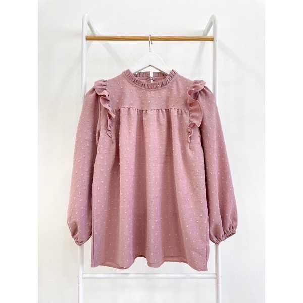 QUEENY BLOUSE Bahan SNOWCUT AIRFLOW✨ Cakep bangetttz 👌👌 All size : Lingkar Dada 112cm Panjang Baju 64cm Panjang Lengan 51cm Lingkar lengan 46cm Varian warna : BLACK - WHITE - NUDEPINK - GREENTY Berat produk :300gr • tidak 100% sama dikarnakan perbedaan cahaya yang di hasilkan oleh kamera -Detail motifnya timbul -Ruffle dipundak kiri kanan -model kerah turtle neck jdi yg hijab lebih aman -Ada kancing pengait dibagian belakang -Bagian ujung lengan kerut jadi wudhu friendly Bahan halus tebal yah putihnya juga ga terawang Cakep bangettt blouse polos yg cocok di pakai ke acara formal😱🥰 Model baju yg lagi kekinian❤️