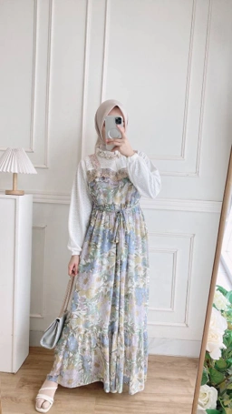 Bahan Chiffon Ceruty kombinasi brocade. Bahan halus, jatuh dipakai, menyerap keringat dan pastinya comfy to wear.